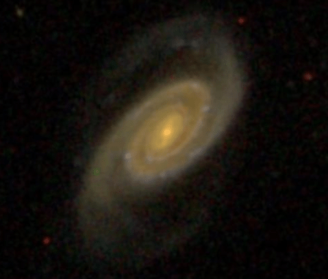260 of you helped beta test and debug the project in our beta, providing invaluable feedback (most of which we hope we addressed!) and submitting over one thousand test classifications of our small test sample. One of the images in this sample was the SDSS r-band image of the galaxy below, catchily known as SDSS J104238.12+235706.8.