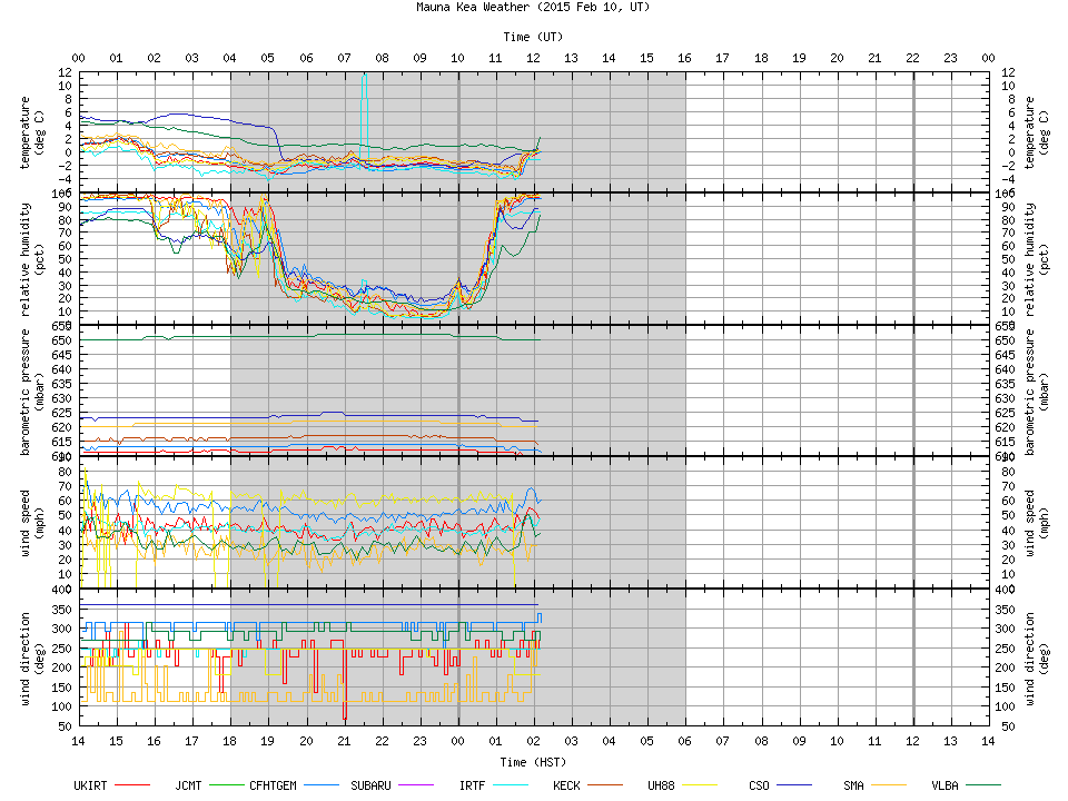 While the weather at Hale Pohaku has been beautiful, it is also amazingly windy. So amazingly windy that we weren’t able to start observing tonight when the sun set. Instead we’re reduced to sitting in the common room refreshing a page of anemometer readings hoping that it will drop down below the maximum 35 mph wind speed we can operate the telescope at.
