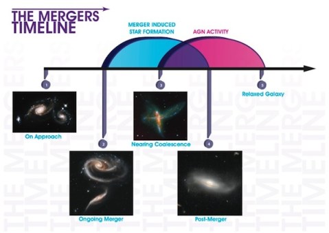 The specific subset we chose are the likely predecessors of elliptical galaxies, and we compared them to the general merger and an elliptical control sample to see how the properties of galaxies evolve along the merger. The SPMs are part of a sample classified by Galaxy Zoo as post-mergers. We looked at this sample again and we picked the ones which look mostly bulge dominated, a key feature of galaxies that are likely to be precursors of elliptical galaxies. You can see in the figure below how, even though these galaxies are similar in morphology to elliptical galaxies, they appear to be in the process of relaxing into relaxed ellipticals.