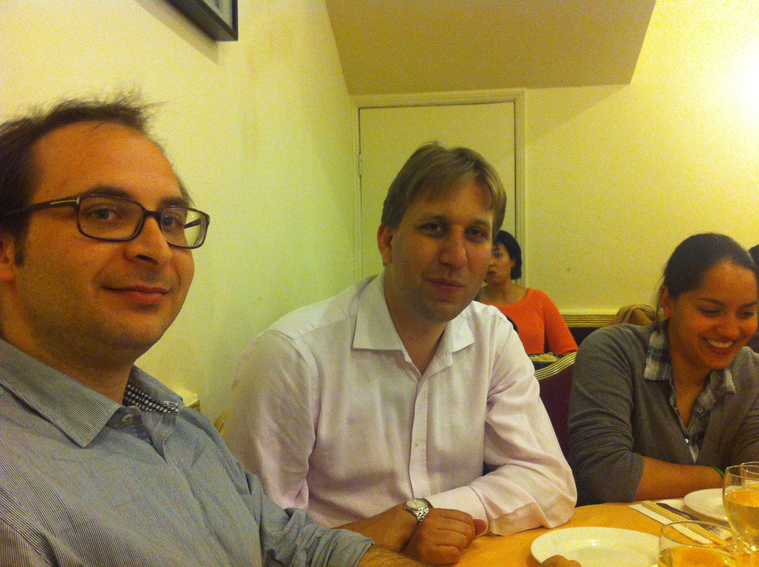 One of the other fun things about this meeting was that as well as the fantastic invited speakers, mostly from outside Galaxy Zoo collaboration, many members of the Galaxy Zoo science team were able to attend and contribute talks. We had representatives of team members from Minnesota, Oxford, Nottingham, Portsmouth, Hertfordshire and Zurich in attendance. It was a great chance for us to catch up both scientifically and socially. Below is a set of round table pictures we took during our “team dinner” that Friday night in London’s Chinatown. The captions always list names from left to right. The poor photography is entirely my fault!