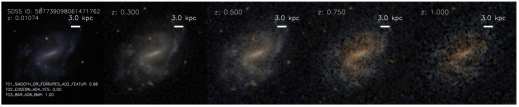 One of the critical issues with all Galaxy Zoo data has been calibration of the morphologies we measure, especially in distant galaxies where small and/or faint images can affect the accuracy of classifications. Using a piece of software called FERENGI, we artificially processed SDSS images to make them appear as if they were much further away, and we’re using those classifications to calibrate the data from Hubble. This included 6,624 images of galaxies at a range of distances and brightnesses.