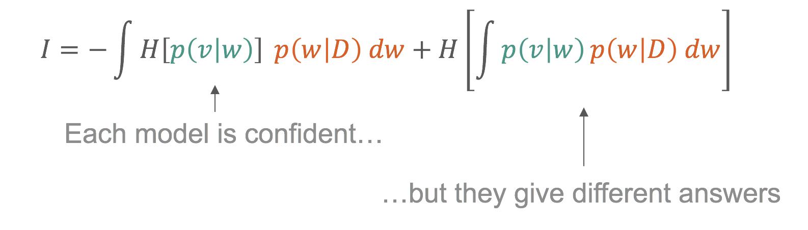 This is only possible because we think about labels probabilistically and approximate training many models.