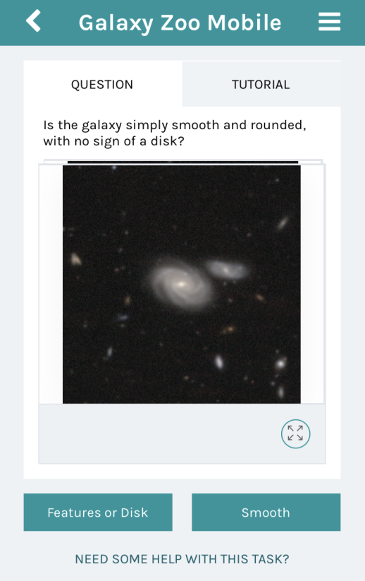 Get involved by downloading the Zooniverse app (if you don’t have it already), heading over to ‘Space’ section, and selecting the ‘Galaxy Zoo Mobile’ project. From there, you will be greeted with three different workflows – ‘Smooth or Featured’, ‘Spiral Arms’ or ‘Merging/Disturbed’. Pick whichever you like! The simple, swiping interface allows you to classify galaxies much faster than ever before, meaning the Galaxy Zoo science team can produce results even quicker. So, download the Zooniverse app today and start classifying!