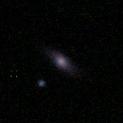 All of the UKIDSS images you see in Galaxy Zoo are what we call “artificial-color” — we use images captured by the telescope’s infrared detector, and then combine the different infrared wavelengths into a single color image. For our images, we use data from the Y-band filter (1.03 microns) for the red channel, J-band filter (1.25 microns) for green, and K-band (2.20 microns) for the blue channel.